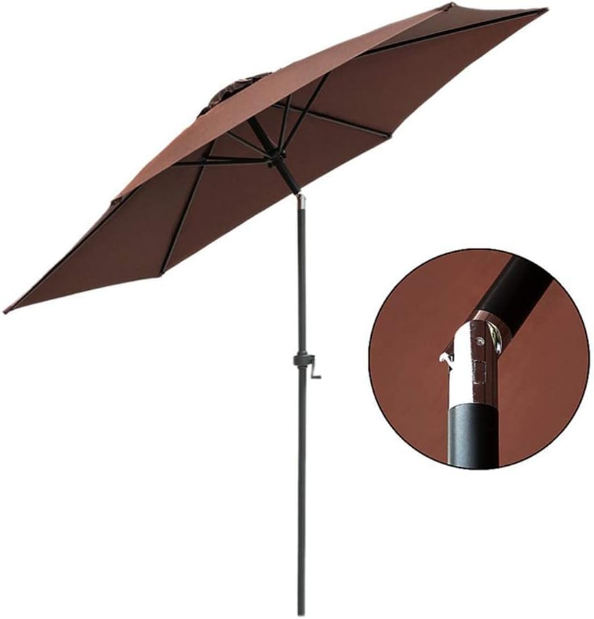 7.5ft patio market umbrella is large enough to cover a tavern table or small table, with a black frame, crank opening and closing, and a button tilt mechanism> > polyester canopy> > Not suitable for windy wear> > Anti-UV> > Can be used in gardens, poolsides and backyards and terraces> > Opening mechanism: tilt and crank system> > Tan> > 6 ribs> > Frame, black carbon steel coating> > Umbrella type: market umbrella, with tilt and crank, without base> > Packing list: 1×market umbrella (without base)> > ? We try our best to make picture close to reality, but light, contrast and color display may cause color difference> > ? > > ? about market umbrellas, tilt umbrellas, canopies of various materials, colors, and more styles of patio umbrellas{/p}