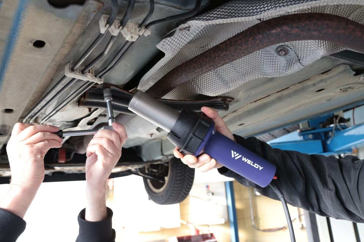 The Weldy energy HT3400 heat gun is perfect for performance-intensive plastic welding work. The 3400 W heating output can be easily and infinitely adjusted. Large-scale shrinking, bending, heating and drying tasks are accomplished with ease using the appropriate work nozzles. The energy HT 3400 heat gun from Weldy can also be purchased as a complete set in three other editions: The "plastic kit" includes a 5 mm tube nozzle and a 4 mm quick welding nozzle. The "overlap kit,” includes a 40 mm / 1.6 inch and 20 mm / 0.8 inch nozzle, and a silicone pressure roller. Lastly, the "shrink kit" contains two overlap nozzles, 40 mm / 1.6 inch and 20 mm / 0.8 inch, in addition to a suitable reflector nozzle. All Weldy plastic welder kits contain an instruction manual in 28 languages and a sturdy plastic tool case. In the standard offering, the device packaging is made of cardboard.
